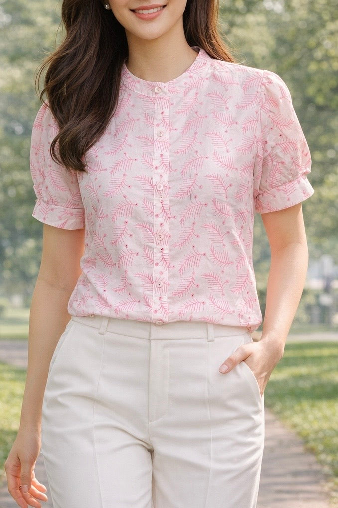 DAHLIA BLOUSE 0139 -EMBROIDERED PINK/WHITE