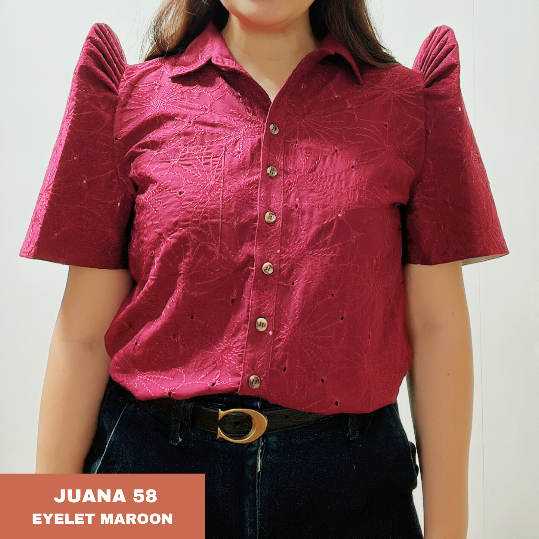 Elevate your wardrobe with the Juana Filipiniana Blouse, a modern take on a timeless classic. Made from premium EYELET fabric, this blouse offers all-day comfort while exuding sophistication.