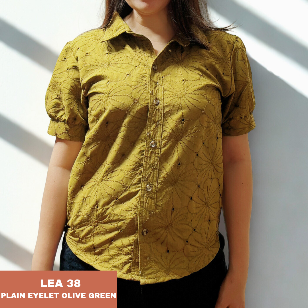 LEA BLOUSE 0038-EYELET OLIVE GREEN