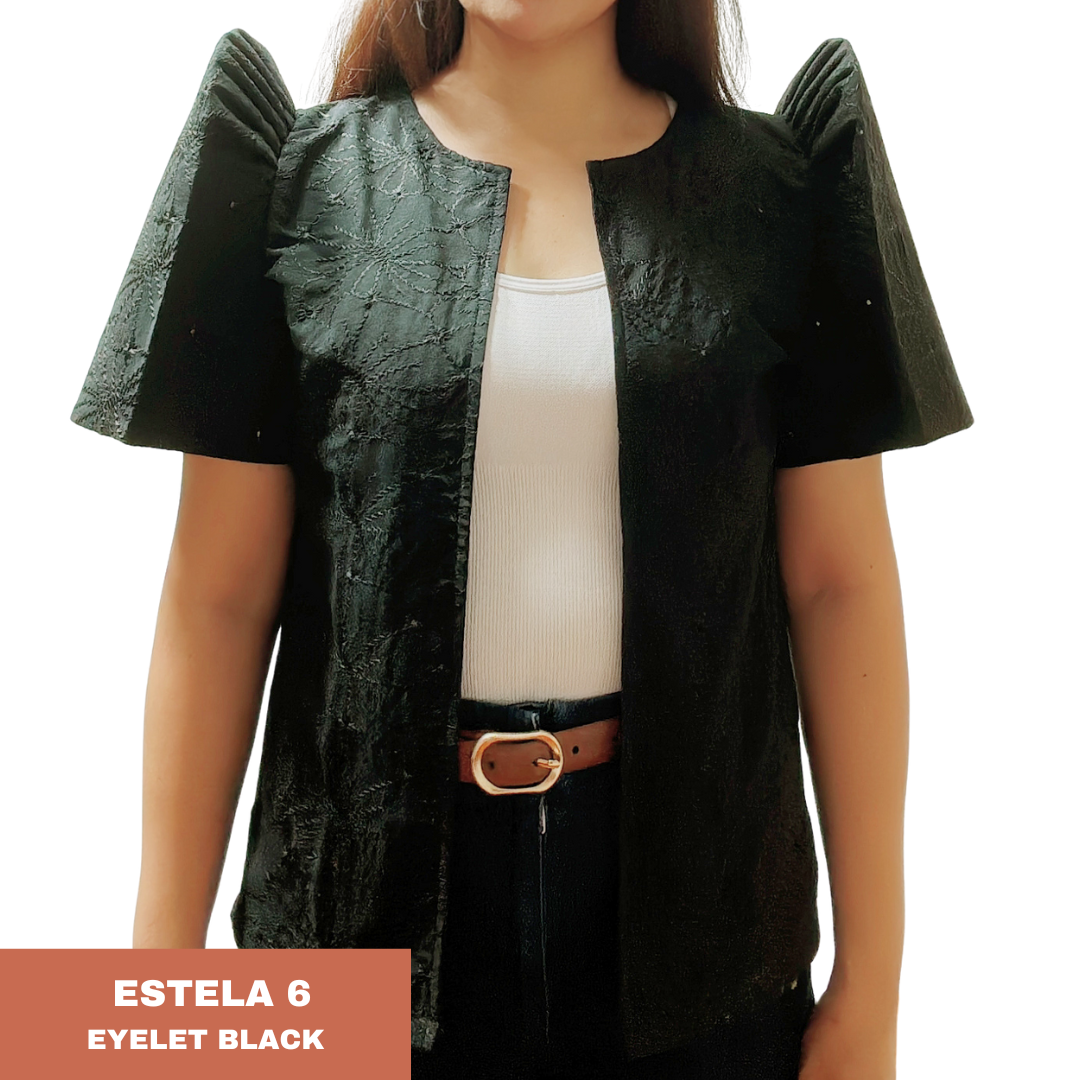 Elevate your wardrobe with the ESTELA Filipiniana Bolero, a modern take on a timeless classic. Made from premium eyelet fabric , this bolero offers all-day comfort while exuding sophistication.